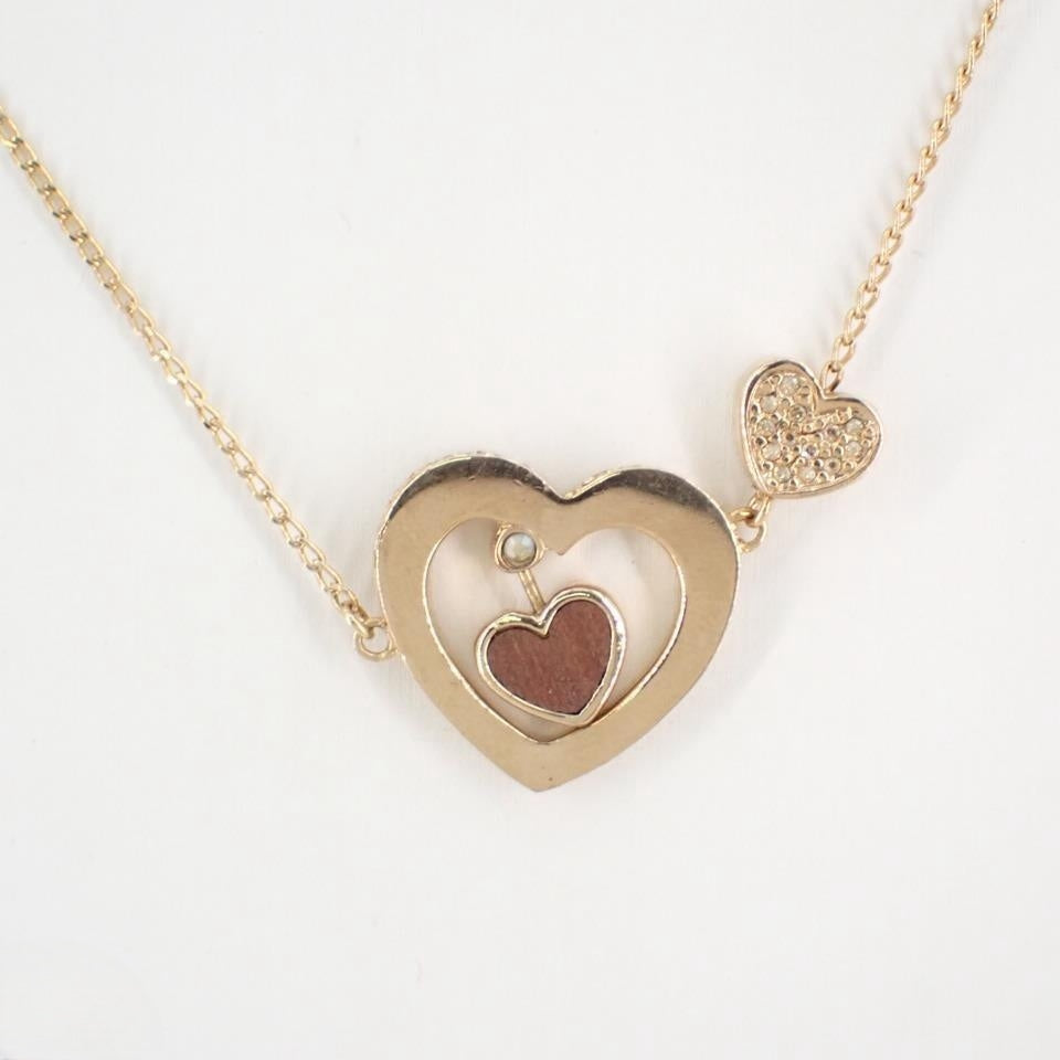D Pink Mother-of-Pearl Rhinestone Heart Necklace