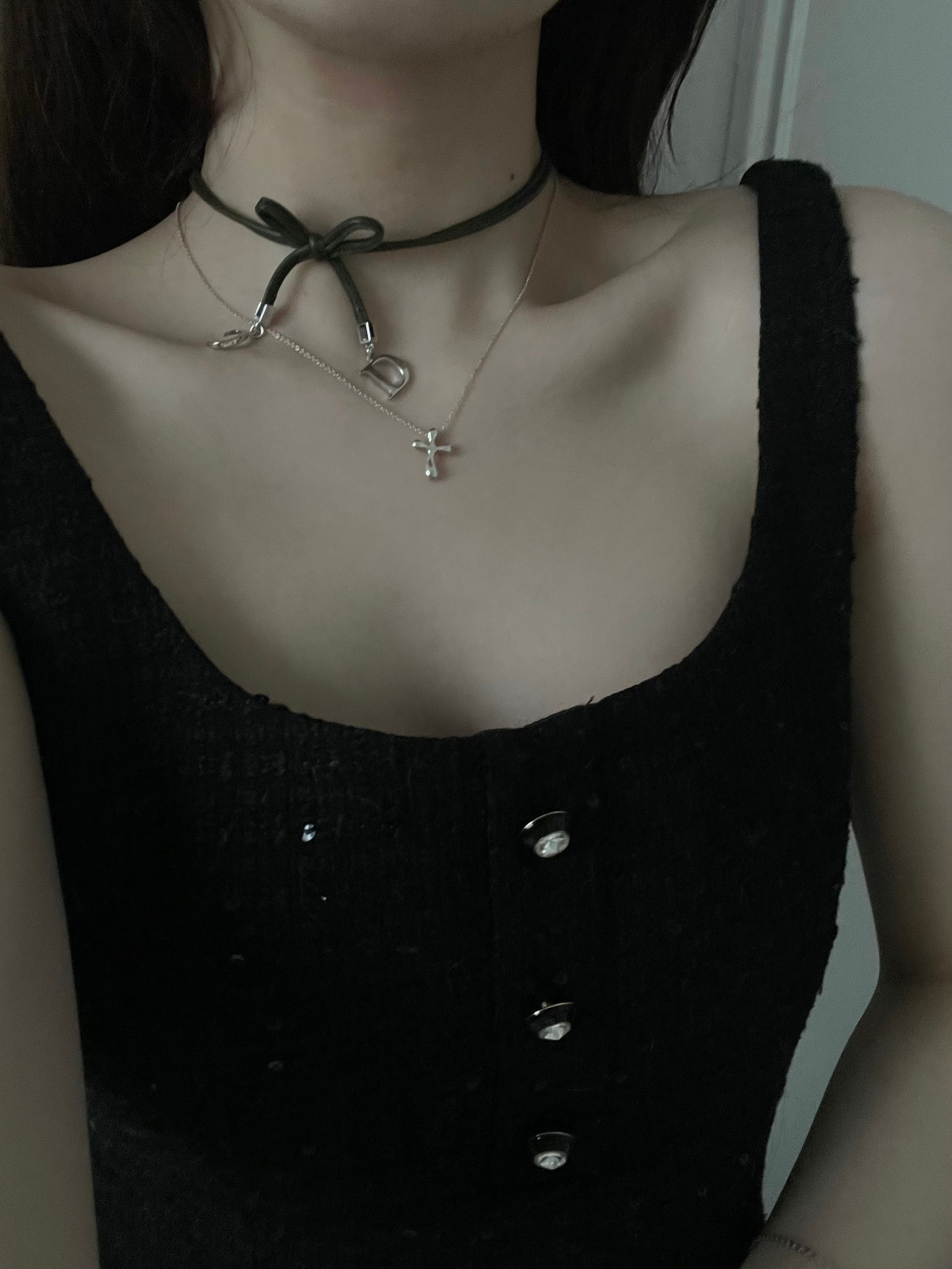 D Leather bow choker